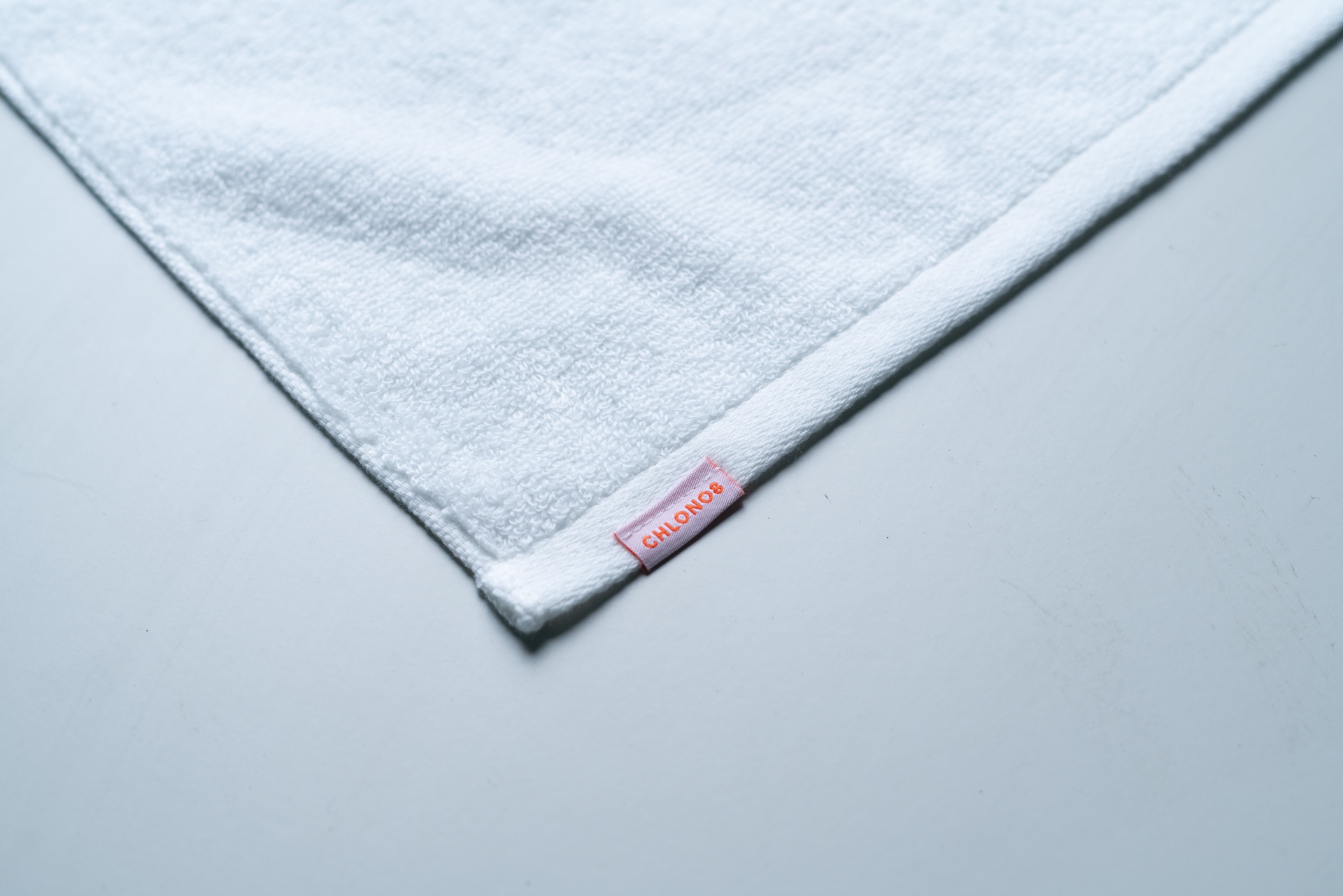 ロゴタグをあしらった、やわらかな肌触りの今治フェイスタオル。